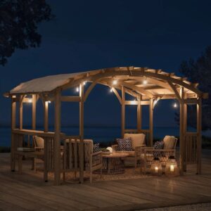 SummerCove 10 ft. x 14 ft. Light Gray Cedar Frame Arched Pergola with Shelves