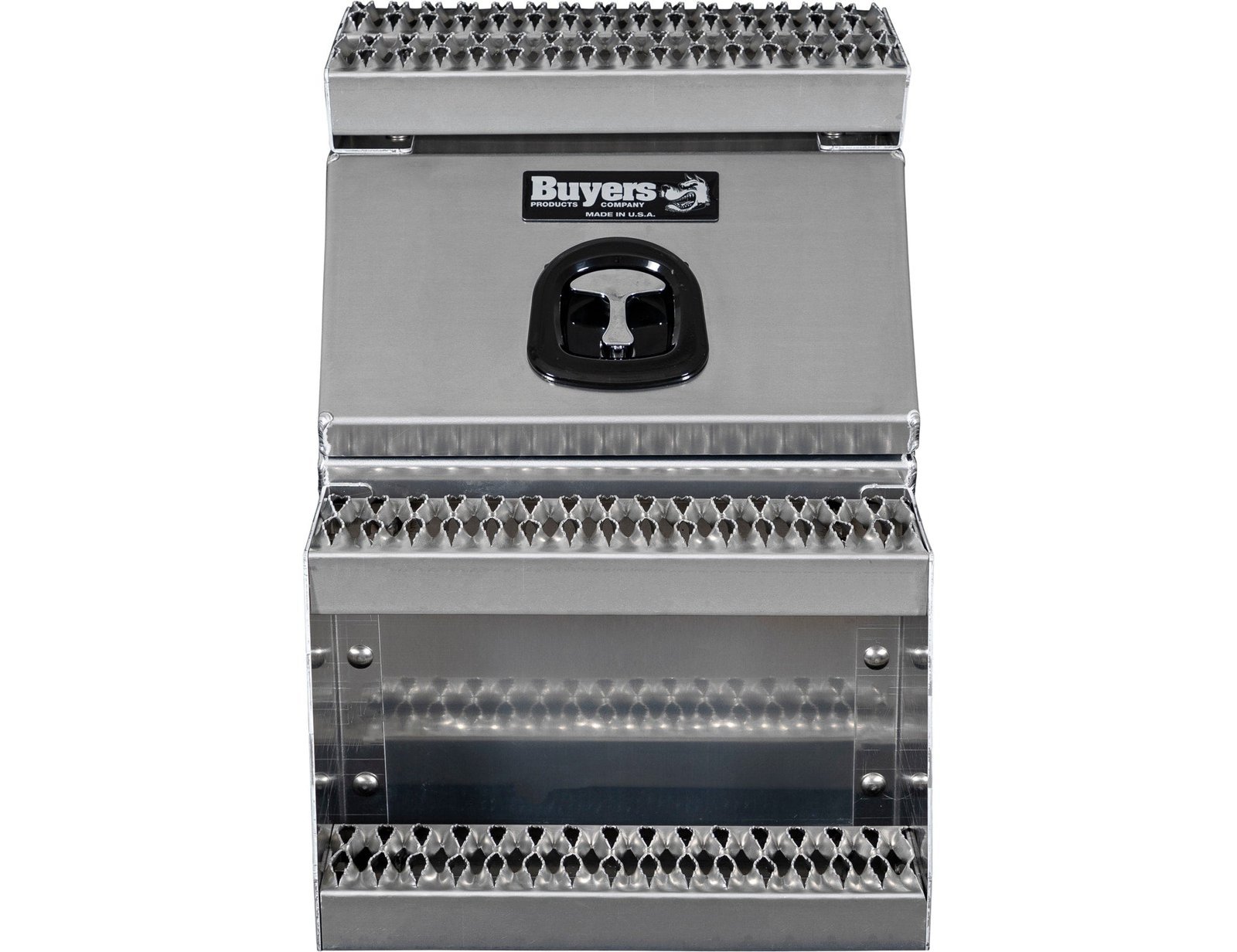 The design is heavy duty but light weight, making the boxes extremely durable without adding a lot of weight to your tractor trailer. The hinge and hardware are constructed of corrosion-resistant stainless steel. An automotive bulb seal and locking, polished stainless steel T-handle latch keep your tools protected from theft. Replaceable grip strut steps provide superior traction in inclement weather and can be swapped out as they wear down.Ultra-wide opening lid makes it easy to store and access equipment on your semi truck.Universal design fits Peterbilt®, Kenworth®, International®, Freightliner®, Western-Star®, Volvo®, and Mack® trucks.Extremely durable 0.125 in thick aluminum construction.Corrosion-resistant stainless steel hinge with heavy duty hinge and stainless steel hardware.Replaceable grip strut steps provide superior traction and can easily swap out as they wear down.Locking, polished stainless steel T-handle latch keeps your tools protected from theft.Automotive bulb seal keeps water and dirt out of your box.Easy to install on your tractor trailer frame rail, For boxes wider than 18 inches, Buyers recommends using 1701015 Steel Mounting Brackets to prevent stress cracksMade in the USA.CA Residents: Prop 65 Warning(s)