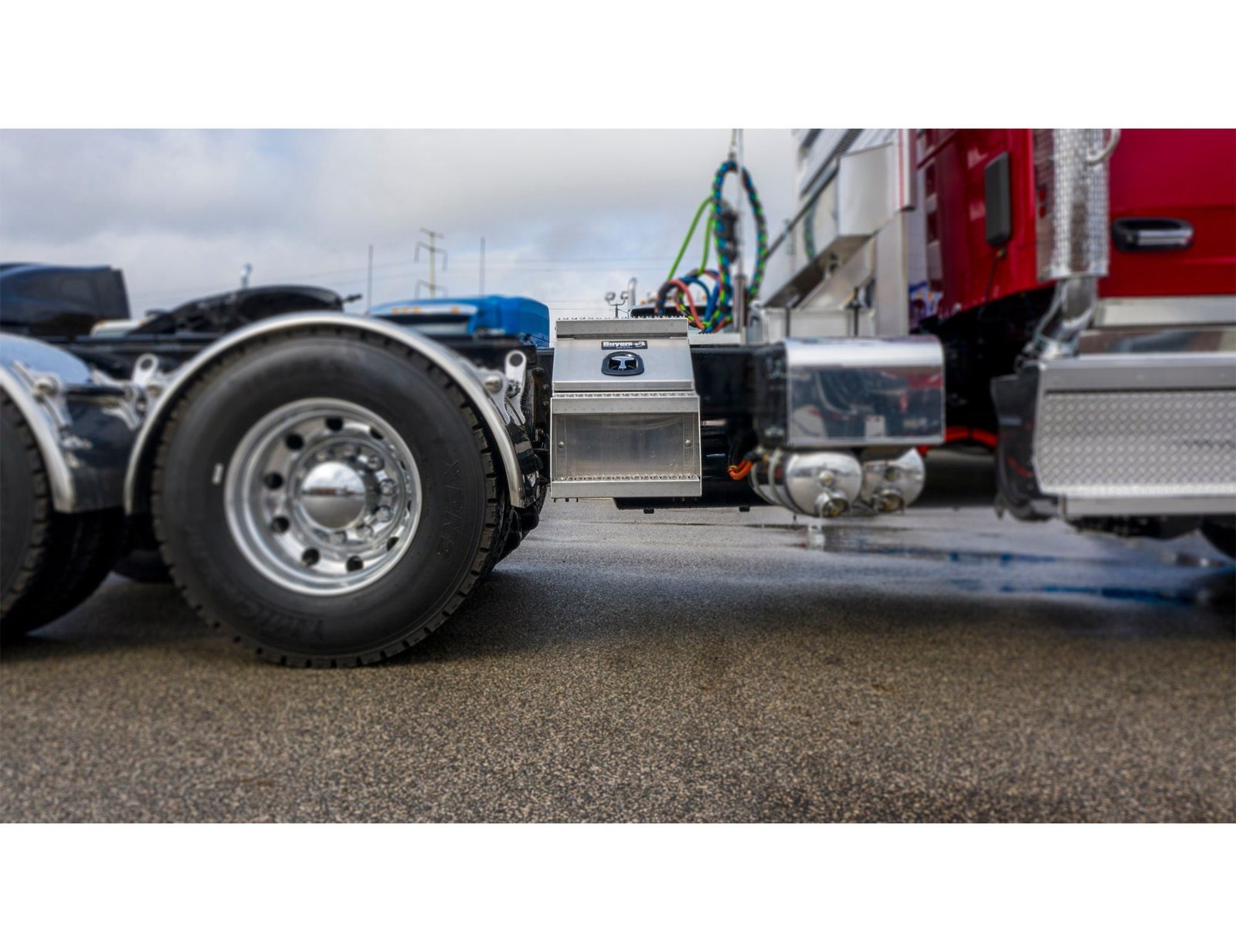 Buyers Products WideOpen Class 8 Step Boxes provide spacious, accessible storage for your semi truck. The lid of each box opens extra wide, allowing you to stow larger items and easily reach your tools and equipment. A universal design fits all major semi truck brands including Peterbilt®, Kenworth®, International®, Freightliner®, Western-Star®, Volvo®, and Mack®. The boxes feature .125 in. thick aluminum construction to handle life on the open road.