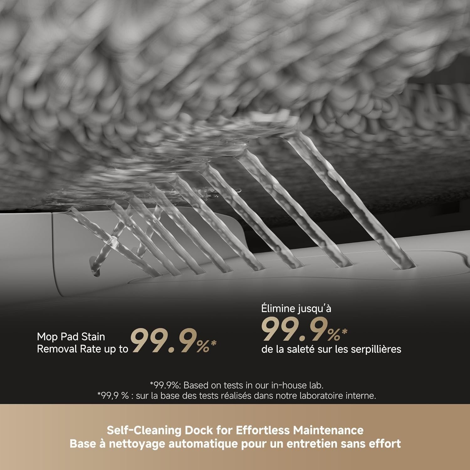 - Edge-to-Corner Vacuuming and Mopping: Achieve thorough cleanliness of corners and tight spots with Dual Flex Arm technology. Its extendable side brush and mop aptly tackle different messes beneath low-profile furniture and in narrow spaces.
