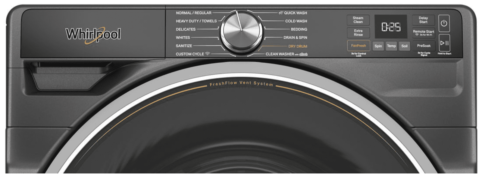 • FreshFlowâ„¢ Vent System: Fan-powered system with antimicrobial gasket keeps washer fresh.
