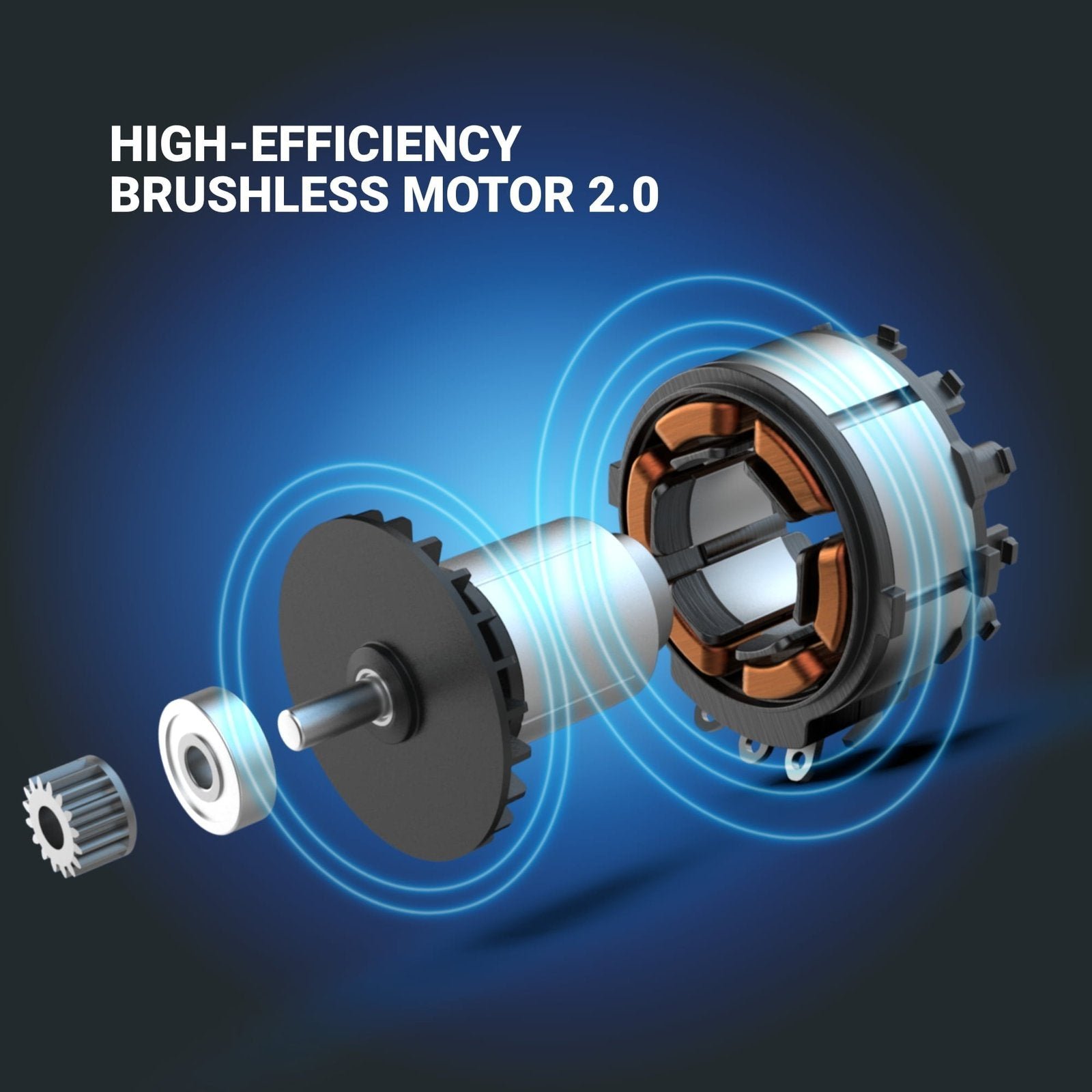 - High-Efficiency Brushless Motor 2.0 delivers 40% more power and 10% longer run time than first-generation brushless motors, as well as 10X longer life than standard brushed motors.